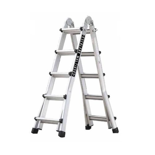 Escalera industrial multiusos de tijera telescopica 10+10 peldaños 5,10mt aluminio codiven master 5x5