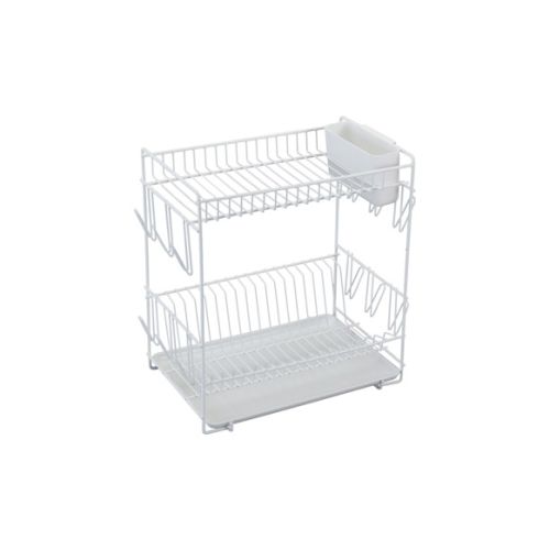 Escurreplatos fabricado en acero con recubrimiento plástico anticorrosivo de color blanco. Capacidad para 18 platos. Con bandeja y escurrecubiertos de plástico. Con ganchos laterales.