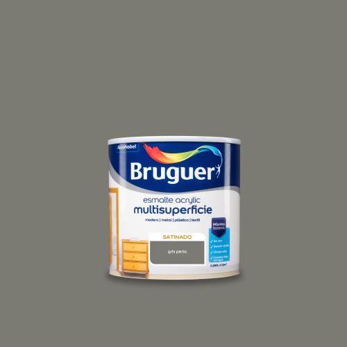 Esmalte acrilico satinado interior, exterior sin olor 250 ml gris perla bruguer