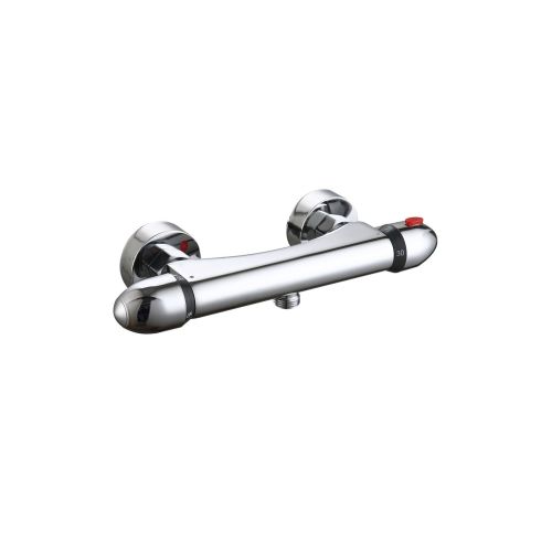 Grifo para ducha termostático modelo Eco. Conexión para flexo 1/2" y tope de seguridad en 38 grados. Acabado en cromo. Medidas: 29 x 8 x 4,4 cm.