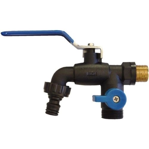 Grifo doble nailon con racor 1/2" Anti-hielo. Rosca entrada de latón de 1/2". 2 salidas de rosca nailon de 3/4". Salidas con cierre independiente. Aguanta bajas temperaturas -20ºC a 120ºC Fabricado en PA66 Cuerpo interior de latón