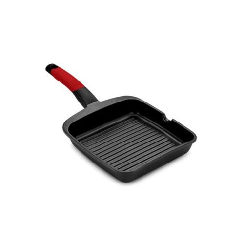 Grill cocina plancha rayas con mango 28cm aluminio fundido negro/rojo bra a411428