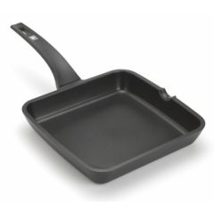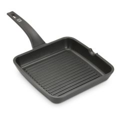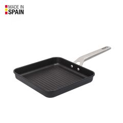 Grill plancha ondulada de 28x28 cm en aluminio forjado Ecostone WECOOK - 4 mm espesor. Máxima robustez - Antiadherente ecológico libre en PFOA de larga duración y resistencia. - Base de inducción cuadrada y lisa. - Máxima eficiencia y distribución del calor. - Mango de madera plegable - Cortafuegos negro. - Apta para todo tipo de cocinas incluida la inducción. - Color negro. - Apta para lavavajillas.
