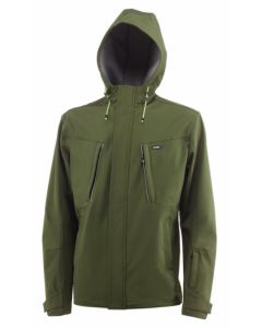Softshell / Cortavientos. Color Verde. SERIE KASUAL. Chaqueta softshell de color verde con capucha con diseño innovador de corte slim fit. Cierre con cremallera frontal y tapeta con 4 bolsillos frontales todos ellos cerrados con cremallera detalles reflectantes en los bolsillos del pecho. Composición : 94% poliéster + 6% Spandex. 310 g. Talla XXL