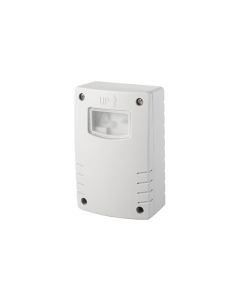 Detector de movimiento mediante infrarojos, puede conectar automáticamente un si stema de iluminación consiguiendo así mayor comodidad y ahorro energético. 12 m. alcance de detección 180º. Tiempo de conexión 10seg-4 min. Potencia : max. 1000 W con lámparas incandescentes y halógenas. max. 300 W con lámparas fluorescente s. alimentación 230V/50Hz.