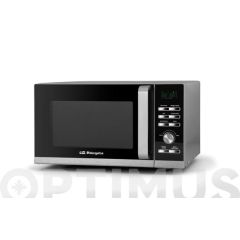 Microondas sin plato 1150W.Capacidad: 20L. 5 niveles de potencia. Base ceramica sin plato giratorio. Que facilita su limpieza . Potencia nominal de salida 700W. Interior esmaltado gris .Temporizador 30 min. Frontal INOX. Luz interior led. S eñal de fin de coccion. Dimensiones externas 448mm ancho 278 mm alto 375 mm prof undo. Cavidad interna: 295 x 174 x 304 mm. peso bruto 12,50kg. Conexión 230V-50H Z Tiene una base cerámica con una superficie plana y lisa que se encarga de rep artir el calor de forma homogénea a los recipientes situados encima.
