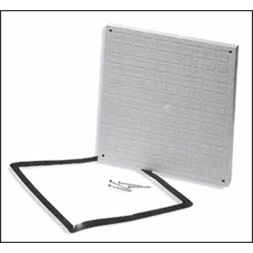 Tapadera hermética para la arqueta. Con kit de junta y tornillos. 550 x 550 mm. Realizada en PP (polipropileno). Se utiliza, en el caso, de que en la arqueta se coloquen cables eléctricos.