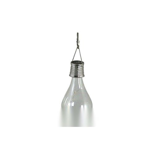 LÁMPARA SOLAR PARA COLGAR FORMA BOMBILLA. Lámpara Decorativa. Luz deled blanca, fabricado en cristal, provisto de gancho para colgar, 14 x7 cm.