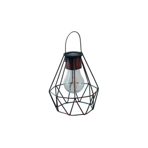 Material metal con bombilla de plástico en color bronce. Para sobremesa o colgar . Batería recargable. Interruptor ON/OFF. Panel solar y protección IP44.
