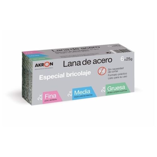 Lana acero pulir surtido 25gr 2fina+2med+2gruesa akron