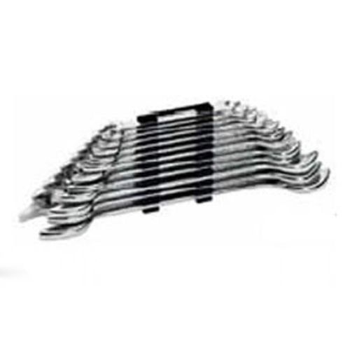 Juego de 10 llaves fijas de dos bocas en dimensiones métricas. Presentación en c lip de plástico negro. Contiene 10 llaves de métrica 6-7, 8-9, 10-11, 12-13, 14- 15, 16-17, 18-19, 20-22, 24-27, 30-32 mm. 1570g.