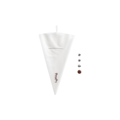 Esta manga pastelera reutilizable ha sido diseñada pensando en todo. Podrás usar la una y otra vez para todo tipo de preparaciones simplemente lavándola después de cada uso.Gracias a su material fino, flexible y con la rigidez necesaria para no tener que ejercer demasiada presi¢n, podrás manipular la masa perfectamente, como con una manga pastelera de plástico tradicional.Este práctico set incluye también 3 boquillas de acero inoxidable de tama¤o estándar para todos los usos. Te permitirán decorar tus tartas, rellenar tus profiteroles y tartas y espolvore ar la masa de cupcakes en los moldes a la perfecci¢n.Las boquillas están atornil ladas a un acoplador, lo que garantiza que la punta esté firmemente en su lugar y que no se derrame masa.Es apto para lavavajillas y fácil de limpiar.
