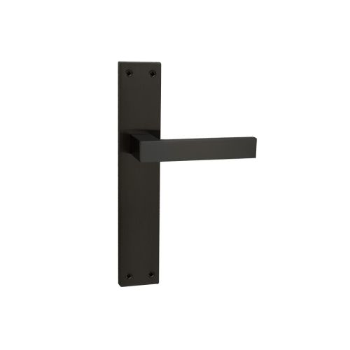 Manivela con placa de diseño moderno pensada para puertas de paso.Color negro.