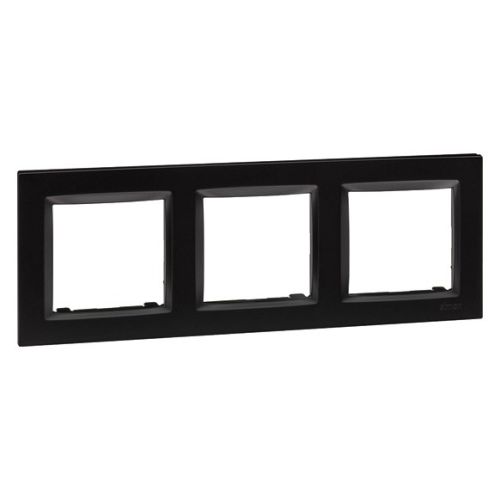 · Gama Simon 10. · Acabado negro. · 3 elementos. · Para interior. · Montaje en pared. · Alineación horizontal y vertical. · Apto para pulsador, conmutador, enchufe Schuko. · Material plástico. · Medidas marco 22,6 x 8,4 cm. · Protección tipo IP20.