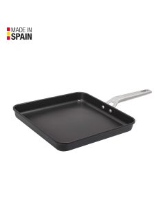 - Agregar a los favoritosGRILL de aluminio forjado 2.8mm espesor. Antiadherente interior 2 capas acabado tipo piedra, ecológico, libre en PFOA. Exterior en silicona color cobre, muy resistente a altas temperaturas y abrasiones. Base de inducción completa, apta para todo tipo de cocinas incluida la inducción. Apto para horno (max 230º). Apto para lavavajillas. Mango de acero remachado por tres puntos del grill, muy resistente y no transmite el calor.Grill RAYADO 28X28cm. Exterior color COBRE. Interior tipo piedra.19,55 €