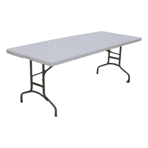 MESA DE JARDÍN PLEGABLE. Fabricada acero y resina (HDPE) 183x75x75 cm. Grosor 5 cm, interior 2,5 cm, doble refuerzo en la pata. Patas: tubo de 28 diámetro x 1 m m Peso: 15,5 Kg Peso que soporta: 60 kg (repartidos en toda la mesa)