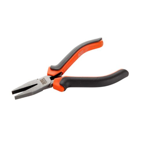 Mini alicate de bocas planas, fabricado en acero al Cromo Vanadio: máxima durabi lidad y resistencia al desgaste. Funciones de sujeción y manipulación de materia les delicados, cables, dispositivos, etc… Cuerpo tratado térmicamente para logra r una durabilidad y dureza óptimas. Mango bimaterial ergonómico para facilitar e l agarre y el confort y reducir el esfuerzo necesario. Alicate muy útil para tra bajos de apriete, manipulación en electrónica, industria, mantenimiento, bricola je, etc.La zona de la punta tiene un dentado fino para hacer sujeciones sin daña r la pieza. Tiene un muelle que presiona para mantener el minialicate abierto si no hay presión sobre los mangos.