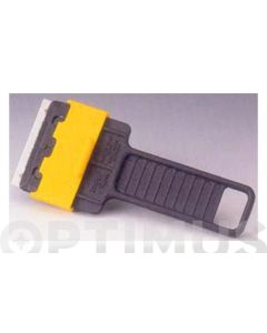 Rascador para cristales, cuerpo en ABS. botón de salida de la hoja y blocaje. Hoja trapezoidal.
