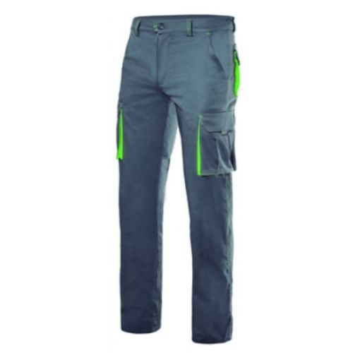 Pantalon trabajo multibolsillo 42 gris/verde lima velilla