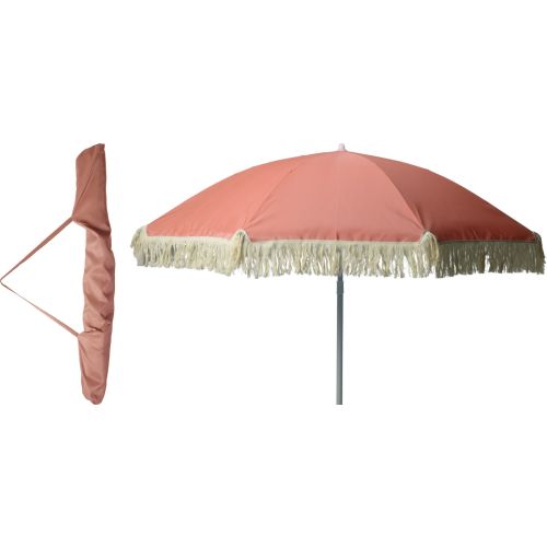 Parasol playa acero con recubrimiento color blanco, inclinable, poliéster de 140 gr/m2, bolsa transporte, UPF 30+