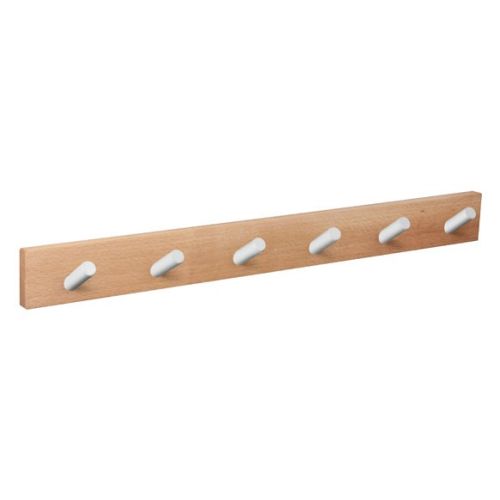 Percha pared madera natural 6 pomos inclinados blancos nesu