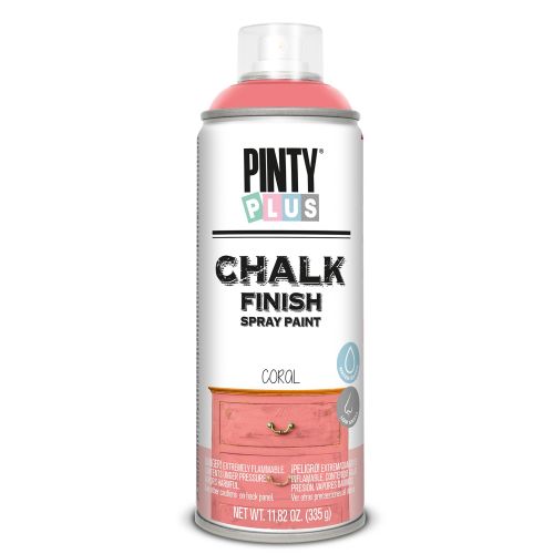 Pintura efecto tiza en spray para decoración. Acabado ultra mate de aspecto y tacto aterciopelado. Perfecta para cualquier superficie incluyendo poliestireno expandido. Se puede lavar con agua y jabón dentro de los primeros 15 minutos. Máxima cubrición y secado rápido. Formulada en base agua, más respetuosa con el medio ambiente. Color Coral. 520 cc.
