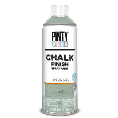 Pintura efecto tiza en spray para decoración. Acabado ultra mate de aspecto y tacto aterciopelado. Perfecta para cualquier superficie incluyendo poliestireno expandido. Se puede lavar con agua y jabón dentro de los primeros 15 minutos. Máxima cubrición y secado rápido. Formulada en base agua, más respetuosa con el medio ambiente. Color London Grey. 520 cc.