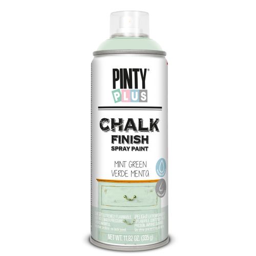 Pintura efecto tiza en spray para decoración. Acabado ultra mate de aspecto y tacto aterciopelado. Perfecta para cualquier superficie incluyendo poliestireno expandido. Se puede lavar con agua y jabón dentro de los primeros 15 minutos. Máxima cubrición y secado rápido. Formulada en base agua, más respetuosa con el medio ambiente. Color Verde menta. 520 cc.