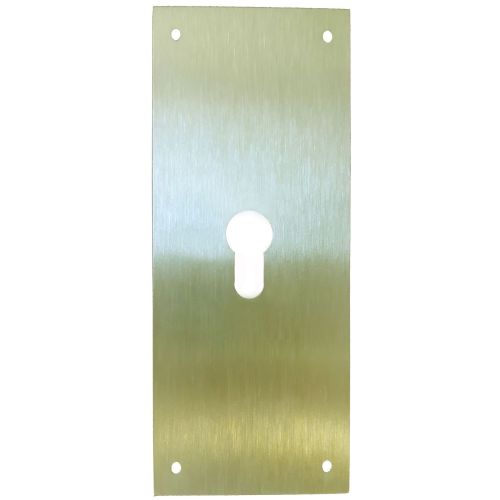 Placa para tapar posibles defectos y evitar arañazos en la puerta 80x250 mm. con bocallave Pera en laton mate de 0,6 mm. de grosor