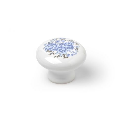Pomo de porcelana para mueble. Clásico. Flor azul 35mm.