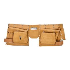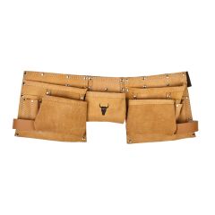 Bolsa portaherramientas con 5 bolsillos fabricado Nylon de alta resistencia. Cinta para soporte de martillo. Clip metálico para soporte de flexómetro. Ribete de protección fabricado en Nylon reforzado. Cosido de alta resistencia reforzado con remaches metálicos encapuchados para mayor durabilidad. Cinturón regulable fabricado en Nylon de alta resistencia con hebilla de conexión rápida. Color verde/beige.