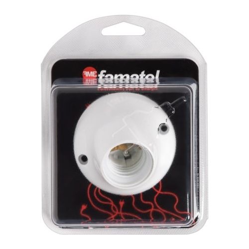 Portalámparas termoplástico curvo E-27 , 4A/250V~. Resistencia de aislamiento Su perior a 4 M Ω.