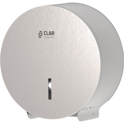 Fabricado en acero inoxidable AISI-304 or AISI-430 . (1) Capacidad para rollo d e Ø250mm y eje de Ø45mm. Acabado brillo o satinado. Base trasera con ranuras pa ra una fácil instalación. Adaptadores opcionales para ejes de Ø 60 o Ø 72mm ( 2 ). Ranura frontal para la visualización del contenido. Sistema de cerradura co n llave CLAR. Peso: 1,20 kg.