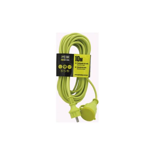 PROLONGADOR. IP44. Color verde. 10 metros. Cable de extensión Pro XT.Manguera di mensionada máximo 16A. Clavija macho en línea IP54. Color verde pistacho para un a mayor visibilidad y reducción de accidentes. Diseñada para jardinería y exteri or.