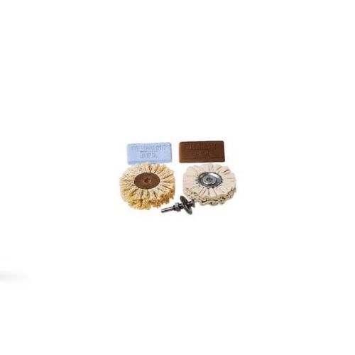1 juego profesional de pulir. Contenido: 1 disco pulidor, ø 85 mm. 1 cepillo de cuerda sisal, ø 85 mm. 2 pastas de pulir. 1 vástago.