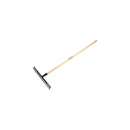 Rastrillo Metálico 16 púas con mango largo de madera de 150 cms. Ancho43 cm. Ace ro especial, estudiado diseño e inclinación de los dientespara facilitar la labo r y obtener un mejor rendimiento. Dientes curvos. Pintura epoxi que le protege f rente a la oxidación. Mango de 1500mm.Espesor del material: 4,5mm. Longitud de l os dientes: 94mm. Herramienta indispensable en el jardín para limpiar, igualar, preparar la tierra y cubrir los sembrados