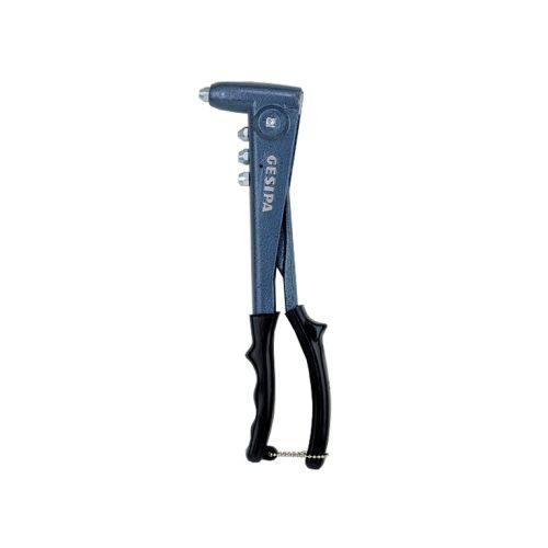 Capacidad de remachado hasta 5 mm en Aluminio y 4 mm en acero. Palanca equipada con resorte de apertura, permite la expulsión automáticadel vástago.