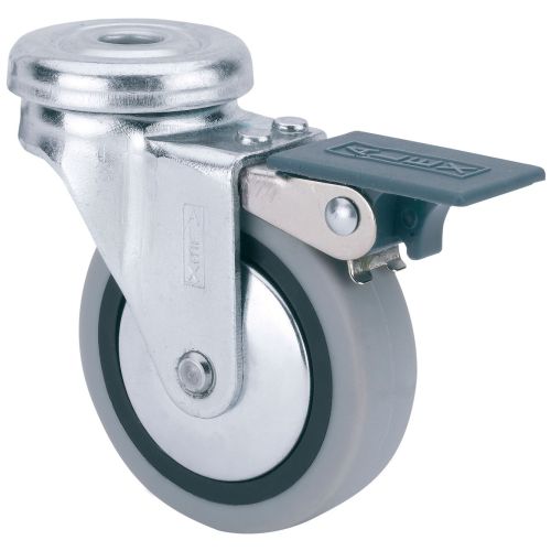 Rueda giratoria con freno agujero pasante 015kg cojinete liso 040mm goma gris n40-pgi ruedas alex 1-0550