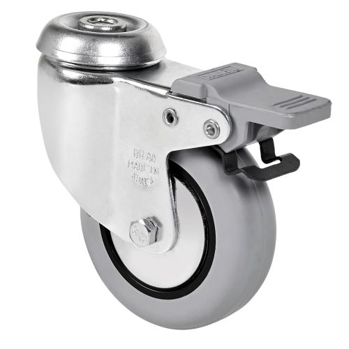 Rueda giratoria con freno agujero pasante 060kg cojinete liso 080mm goma inyectada negra bandaje gris ruedas alex 1-0387