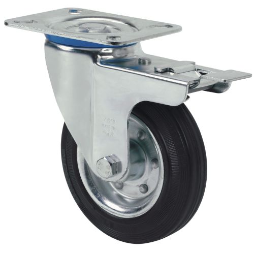 Rueda giratoria con freno platina 105x080mm 080kg cojinete rodillos disco metalico 080mm goma natural negra ruedas alex 2-2309