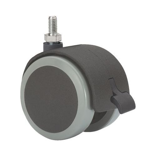 Rueda giratoria doble con freno espiga roscada 050kg 050mm poliuretano negra bandaje gris ruedas alex 1-0646