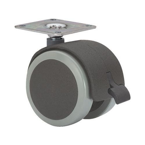 Rueda giratoria doble con freno platina 42x42mm 050kg 050mm poliuretano negra bandaje gris ruedas alex 1-0643