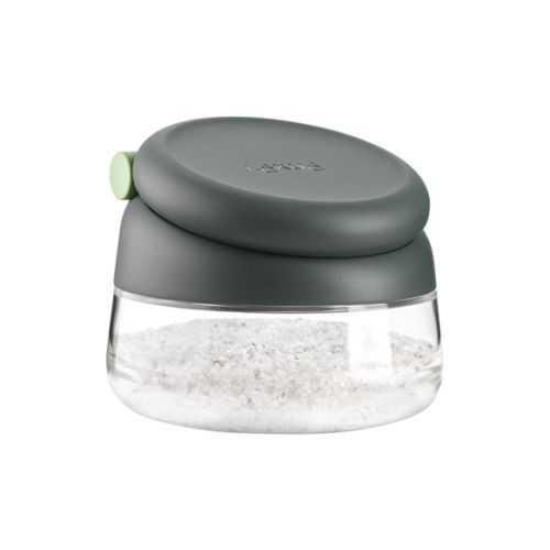 Material: Vidrio borosilicato, PP y 100% silicona platino. Capacidad 500 ml. Ci erre anti-humedad para una mejor conservación. Uso: Ideal para almacenar sal o a zúcar, con una cuchara dosificadora incluida. Temperatura: Resistente a tempera turas desde +4ºC hasta +80ºC. Dimensiones: 12.3 cm de alto, 10.6 cm de largo. Limpieza: Apto para lavavajillas.