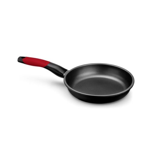 Sartén antiadherente de 28 cm. en aluminio fundido Negro/Rojo Premiere BRA Con fondo difusor magnético de 5,5cm de espesor, válido para todos los fuegos incluido INDUCCIÓN Con Antiadherente Teflon Innovations libre de PFOA para conseguir una mejor limpieza y una total higiene al no tener ninguna parte de aluminio en contacto con el exterior. Mango ergonómico negro con componente de silicona en color rojode para un agarre agradable y seguro Conjunto totalmente sostenible y respetuoso con el medio ambiente. Dimensiones: Ø28 cm/ Base: Ø19,8 cm/ Altura: 5,3 cm