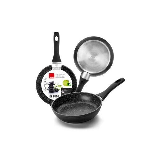 Fabricado en Aluminio y mango de baquelita soft touch (tacto suave). Diametro: 3 0 cms. 2 capas de antiadherente de alta calidad estilo piedra. DURO y RESISTENTE . Libre de PFOA y baja en emisiones de Co2. Apto para todo tipo de cocinas inclu ido inducción. Fondo difusor full induction: Inducción total, gracias al disco c ompleto de acero 18%, permite un calentamiento uniforme y rápido para un ahorro energético. Sus 5 mm de espesor hacen de ella una pieza DURADERA e INDEFORMABLE.