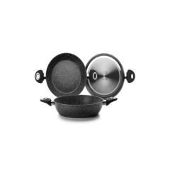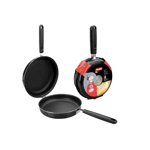 Sartén doble para tortillas 26 cm Indubasic IBILI - Material : Aluminio con 2 capas antiadherentes. - Mango bakelita, desmontable - Válido para todos los fuegos, incluido inducción - Dimensiones : Ø26x9,5 cm