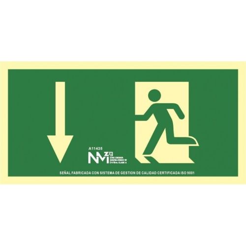 Señal evacuacion flecha abajo pvc 0,7mm clase b vision 10m