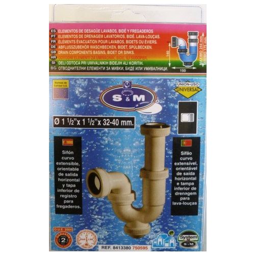 Sifon evacuacion curvo 1" 1/2x40mm s&m 750595