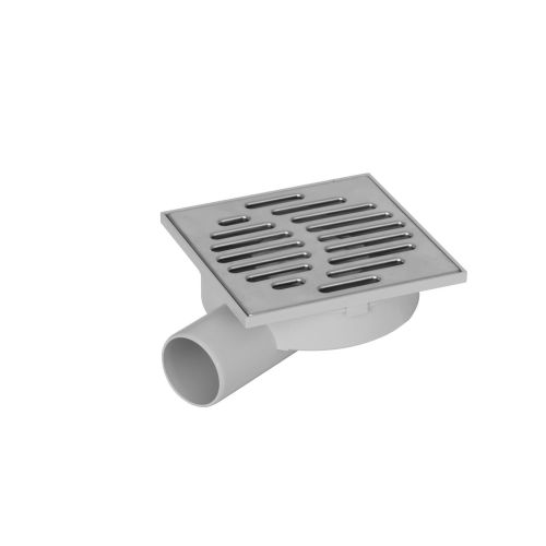 Sumidero sifónico con rejilla inox o en PP, resistente a los agentes atmosféricos y fácil de inspeccionar. Salida vertical de diferentes diámetros. Es un producto patentado por Dakota. on marco y rejilla inox de 15 x 15 cm. en PP. Realizada en PP (polipropileno). Se utiliza para el Drain de las aguas pluviales en las terrazas.