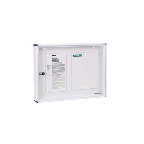 Panel de anuncios de aluminio color blanco. Capacidad para 2 DIN-A4Panel de anuncios de cuerpo de aluminio y puerta de metacrilato. Incluye imanes de fijación. Práctico. Permite fijar en ella notificaciones para la comunidad de vecinos. Dimensiones: 480x350x50 mm. Color blanco.